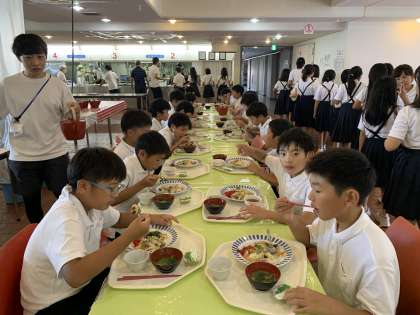 みんなで食べる臨海最後の食事になります。最後は中華丼。
