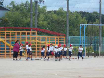 鉄棒と竹馬の練習をクラスごとの交代で取り組んでいます♪