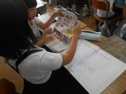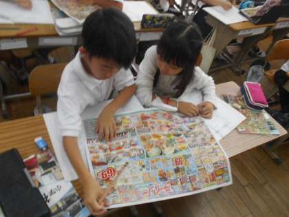 スーパーマーケットの広告を使って、食品がどこの産地か調べて、どんなものがどこから運ばれてくるのかを調べてみました♪
