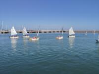 2日目、ヨットの体験です。2人で風をつかみながら、ヨットを進めています。
