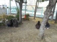 昼休み,北門の近くでしゃがんでいる児童が何人かいます。どうやら,どんぐりを拾って...