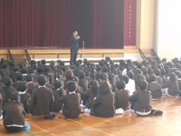 朝会が行われました。校長先生のお話があり,幼小中美術展の表彰がありました。