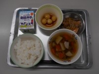 献立牛乳揚げパンミニパンうずらたまごいり野菜スープチリコンカン