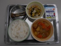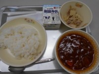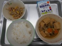 献立牛乳ごはんチャージャー豆腐ごぼうサラダ