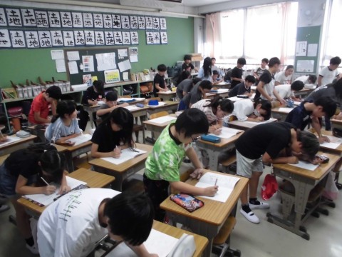 クラスみんなのいいところを,順番に席を回ってノートに書き合いました。