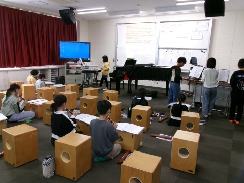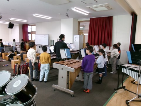 3年生が合奏の練習をしています。リコーダーが主旋律を奏で,木琴や鉄琴が和音を響かせていました。