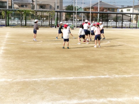 この間までは,1つのサークルを囲んでシュートをしていましたが,今はサークルが2つに増えてレベルアップしています。