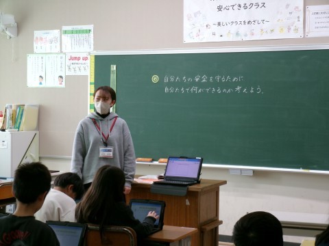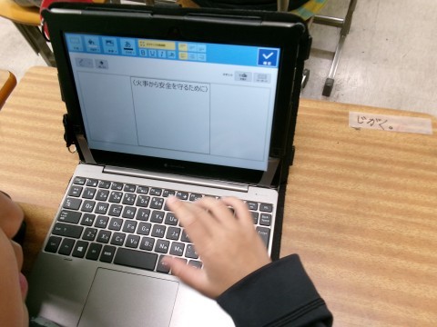 自分たちの安全を守るために何ができるか,タブレットに自分の考えを入力しているクラスがありました。