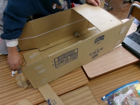 総合の学習では,1年生と活動するためのおもちゃ作りに取り組んでいます。