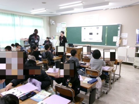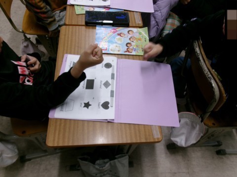 外国語活動では,外国語で「じゃんけん」をしながらコミュニケーション活動を行っています。