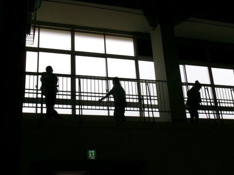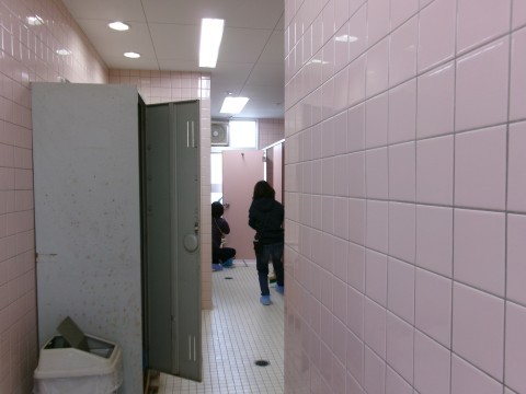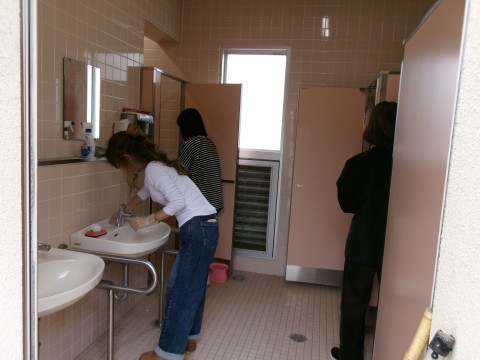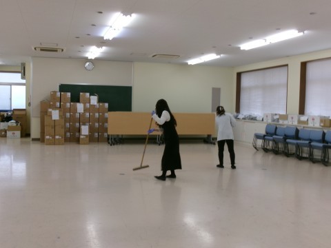 子どもたちが普段は掃除できない,体育館の2階部分や北校舎のトイレ,多目的室の隅々まできれいに掃除していただきました。