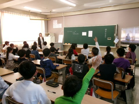 自己紹介をしていました。先生や友だちの好きなものを聞きながら盛り上がっていました。