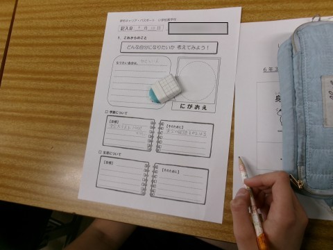 身体測定の準備をしながら,係を決めたりキャリアパスポートに今学期の目標を書いたりしていました。