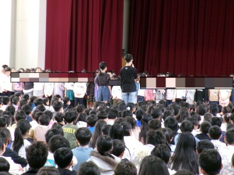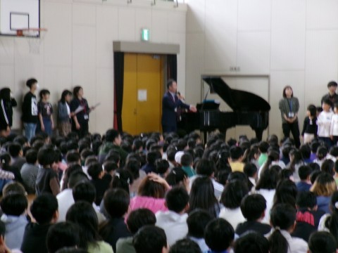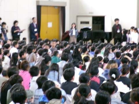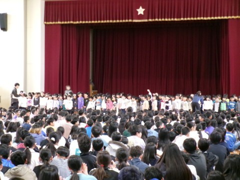 児童会役員の司会で,校歌を歌ったり2年生から朝顔の種をプレゼントしたりしました。