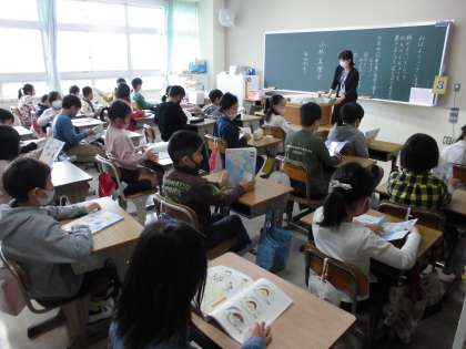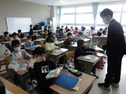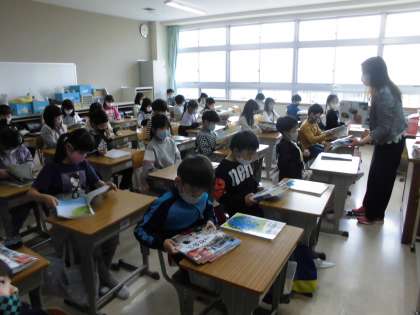 新しい教科書を配ってもらいました。どんな学習をするのか楽しみです。