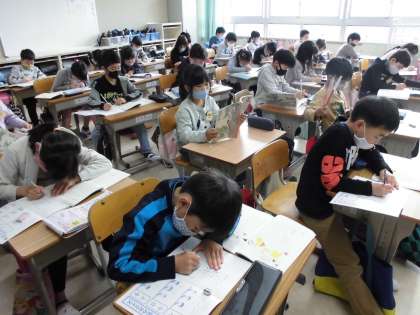 3年・国語「どきん」 公開日 2021/04/13 更新日 2021/04/13 3年生 谷川俊太郎の「どきん」という詩を,ノートに丁寧に書いている様子です。詩のリズムを,詠んだり書いたりして感じます。 写真はこちら↓ 閉じる
