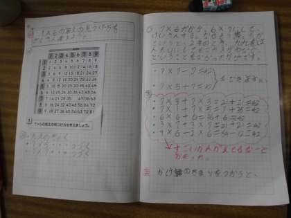 今日の課題は,「7×6の答えの見つけ方を,たくさん考えよう」です。たくさんの考え方が出てきました。答えは一つでも,問題を解く方法はたくさんあることを経験しました。