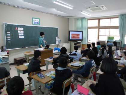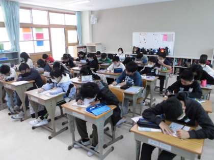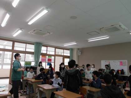 外国語の授業が始まりました。先生の自己紹介や,アルファベットの練習,ラインゲームをしながら学習しました。
