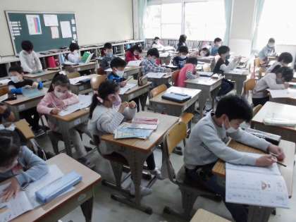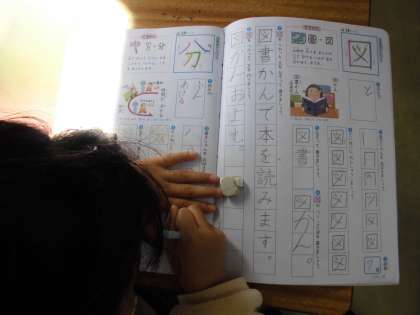 「分,方」の学習をしている様子です。漢字学習ノートに,丁寧に書きながら覚えます。