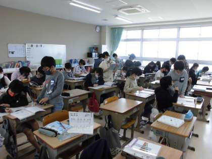 6年・算数「分数のかけ算とわり算」(少人数TT学習) 公開日 2021/04/16 更新日 2021/04/16 6年生 かけ算とわり算の式の誤りを見つけ,友達に説明し合う学習をしている様子です。論理的に説明することができたでしょうか。 写真はこちら↓ 閉じる