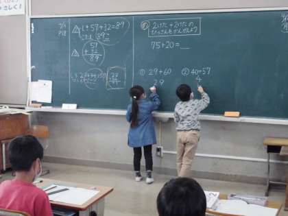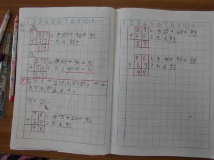 2年・算数「たしざん」 公開日 2021/04/19 更新日 2021/04/19 2年生 「2桁+2桁」のひっ算の学習をしてます。同時に,算数ノートの書き方指導もしていました。 写真はこちら↓ 閉じる
