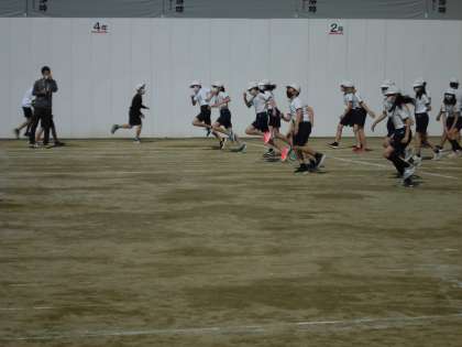 短い距離を,ダッシュで,けんけんで,片足で,両足でと,様々な足の動きで走りました。すくすくと成長するために,スポーツは大切です。