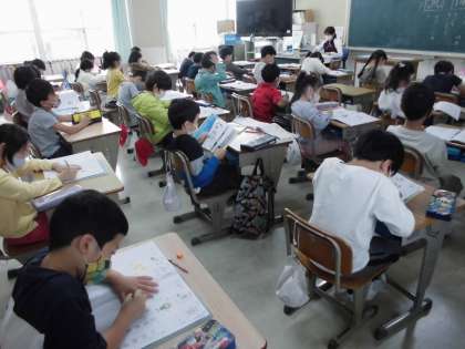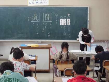 今日の漢字は,「聞,黄」です。書き順に気をつけながら,漢字学習ノートに丁寧に書いていました。