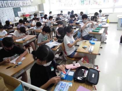 5年・家庭科「小物つくり」 公開日 2021/06/09 更新日 2021/06/09 5年生 フェルトを材料にして,小物をつくる裁縫実習です。コースター,小物入れ,ペンケースなど,思い思いの小物をつくっています。 写真はこちら↓ 閉じる