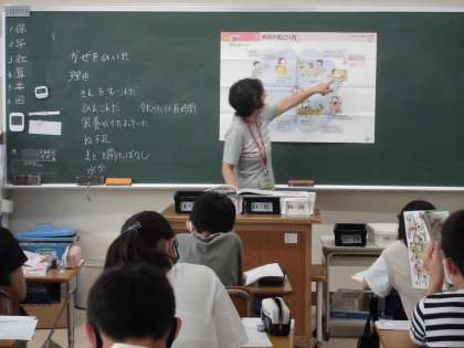 6年・保健「病気の起こり方」 公開日 2021/09/01 更新日 2021/09/01 6年生 病気は病原体の影響だけでなく,体の抵抗力の低下,環境の変化,生活習慣など,様々な要因が重なって起こります。どのようなことに気をつけたらいいのか考えました。 写真はこちら↓ 閉じる