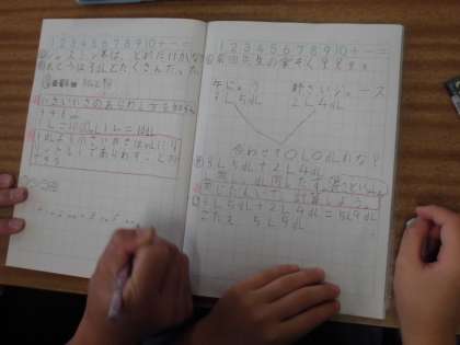 2年・算数「水のかさ」 公開日 2021/09/03 更新日 2021/09/03 2年生 「3dL5dLと2dL4dLを合わせるとどうなるか」が今日の問題です。図をかいたり,式をかいたりして考えていました。自分の力で答えを求めることができたでしょうか。 写真はこちら↓ 閉じる