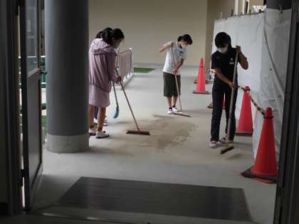 休み時間,美化委員会が,渡り廊下の掃除をしていました。ありがとう。