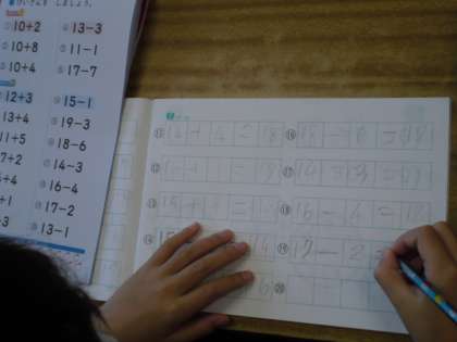 計算ドリルでの問題に挑戦しました。ノートの書き方もずいぶん上手になってきました。