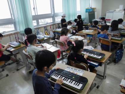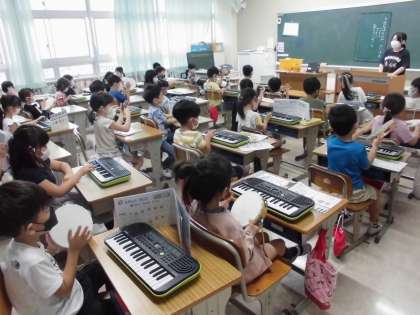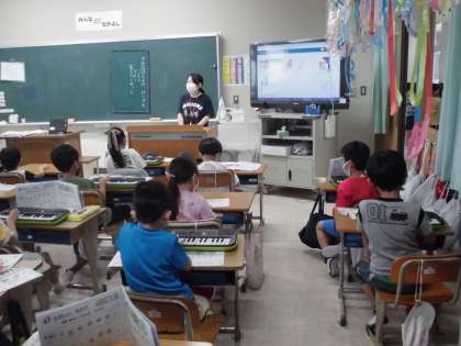 1年・音楽「合奏」 公開日 2021/09/14 更新日 2021/09/14 1年生 メリーさんのひつじを,キーボード,タンバリン,カスタネットに分かれて合奏しました。上手でした。 写真はこちら↓ 閉じる