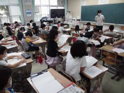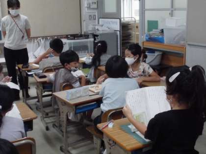 2年・国語「お手紙」 公開日 2021/09/17 更新日 2021/09/17 2年生 一文ずつ交代して読む「つなぎ読み」をしている様子です。集中していないと,自分が読む番が来てもどこを読むかわかりません。上手につないで読むことができたでしょうか。 写真はこちら↓ 閉じる