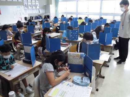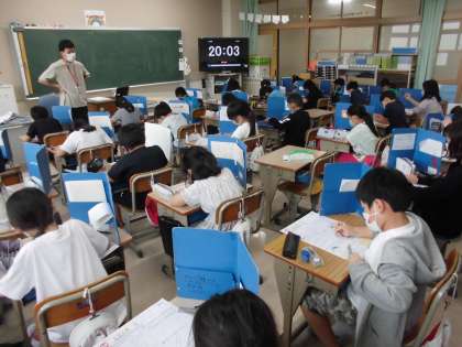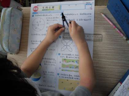 「円と球」のテストをしました。コンパスも上手に使えたかな。