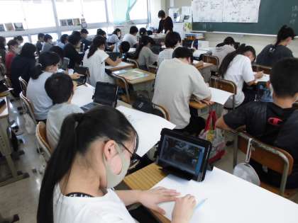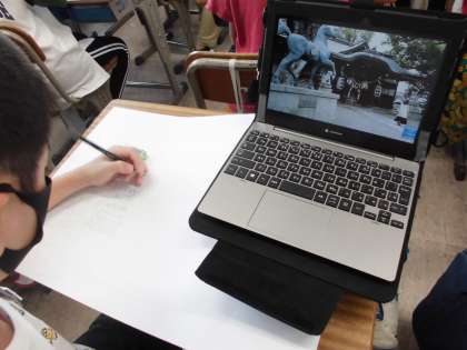 6年・図工「金岡神社の写生」 公開日 2021/09/22 更新日 2021/09/22 6年生 自分のタブレットで,金岡神社の写真を撮ってきました。絵にしたい写真を決め,下書きにとりかかっています。昨年まではデジカメで撮った写真を印刷していましたが,タブレットだと拡大して細かく見ることも可能です。ずいぶんと便利になりました。 写真はこちら↓ 閉じる