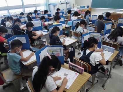 1年・国語「テスト」 公開日 2021/09/27 更新日 2021/09/27 1年生 「うみのかくれんぼ」の学習が終わり,まとめのテストをしました。問題をしっかり読んで考え,解答することができたでしょうか。 写真はこちら↓ 閉じる