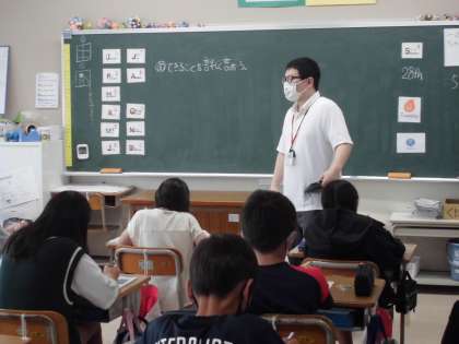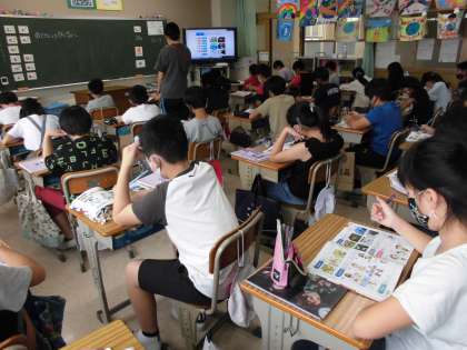 5年・外国語「できることを詳しく言おう」 公開日 2021/09/28 更新日 2021/09/28 5年生 できること,得意なことを詳しく言う練習をしました。写真は,6種類の動物の特技を聞き取り,どの動物か当てるリスニングの学習をしている様子です。 写真はこちら↓ 閉じる