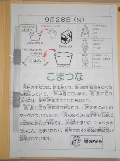 堺でとれた小松菜が入ったサラダは,シャキシャキとした歯ごたえで美味しかったです。