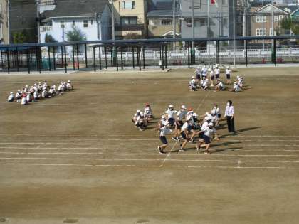 1・2組合同体育で,リレーをしました。バトンの受け渡しが,上手にできたでしょうか。