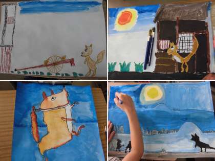 4年・図工「お話の絵」 公開日 2021/10/07 更新日 2021/10/07 4年生 国語で学習したごんぎつねを題材に,お話の絵を描いています。印象に残った場面を想像しながら描きます。 写真はこちら↓ 閉じる