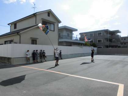 6年・旗手のオーディション 公開日 2021/10/07 更新日 2021/10/07 6年生 体育参観で応援団の旗手に立候補した人の,オーディションがありました。30秒間,旗をきれいに降り続けることができるかで競います。やる気満々です。 写真はこちら↓ 閉じる