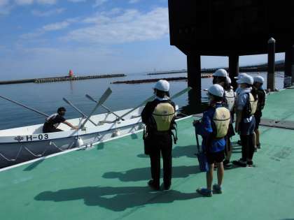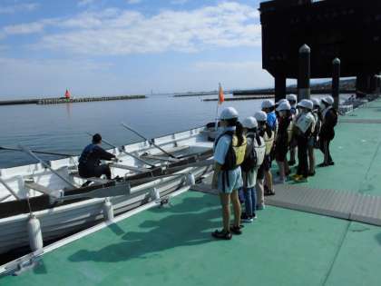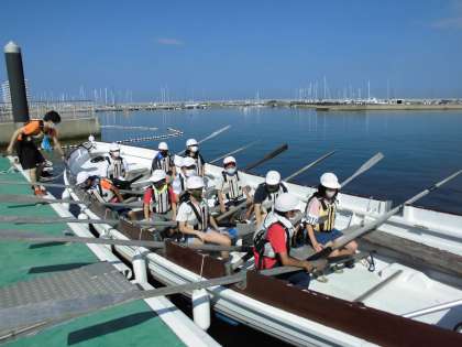 10月7日(木) 臨海学校2日目 2 公開日 2021/10/07 更新日 2021/10/07 5年生 カッターボート体験では,まずオールの漕ぎ方を教わりました。かけ声に合わせて,漕ぐ練習をして,ボートに乗り込みました。初めて乗るボートに恐る恐る乗り込み,それぞれの船が出航していきました。風もほとんどなく,どのボートもぐんぐん進んでいきました。 写真はこちら↓ 閉じる