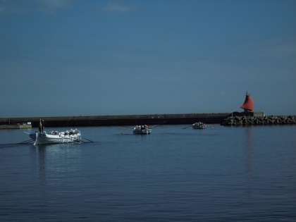 ボートを漕ぎだすと,どのボートもあっという間に湾の外へ行って見えなくなってしまいました。みんなで力を合わせて漕げたのだと思います。