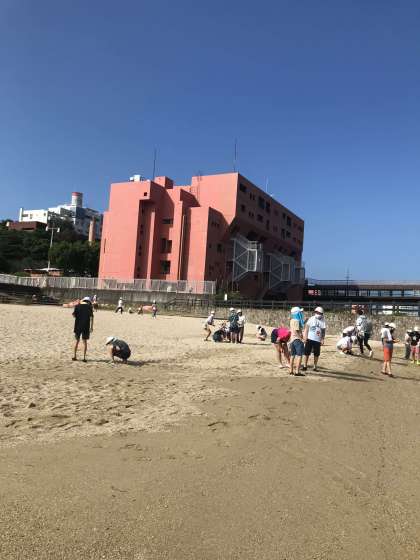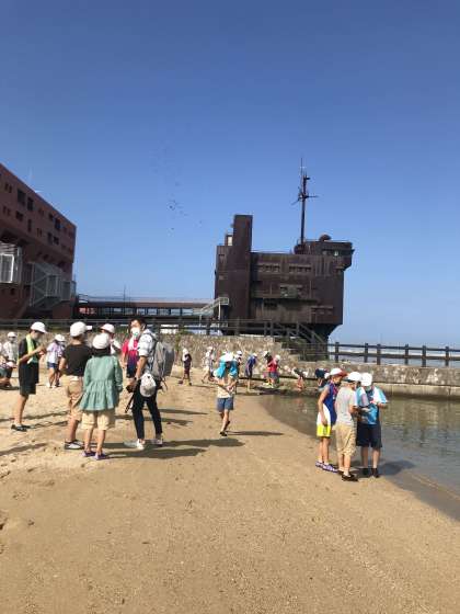 シェルメモリーづくりでは,まず海岸で貝を拾うことから始めます。小さい貝や巻貝など,いろいろな貝の中からお気に入りの貝を選んでいきます。拾った貝を,小さなCDケースの中に入れた画用紙に張り付けながら作品に仕上げていきました。