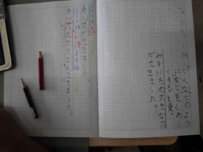 3年・国語「主語・じゅつ語・しゅうしょく語」 公開日 2021/10/11 更新日 2021/10/11 2年生 「赤い花が,たくさん咲きました。」の主語,術後,修飾語を学習していました。自分で分けることができましたか。 写真はこちら↓ 閉じる