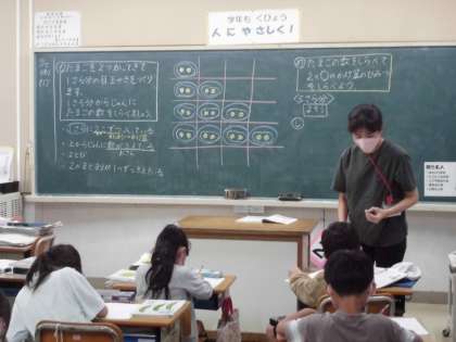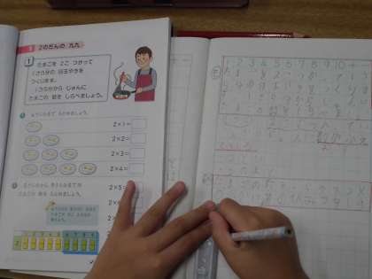 2のまとまりをつかって,かけ算の入り口の学習をしました。模型や図で具体的にイメージしながら,かけ算の意味を学習します。