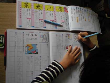 今日の新出漢字は「科,鳴」です。書き順,使い方などを確かめ,漢字学習ノートと漢字ドリルで練習しました。