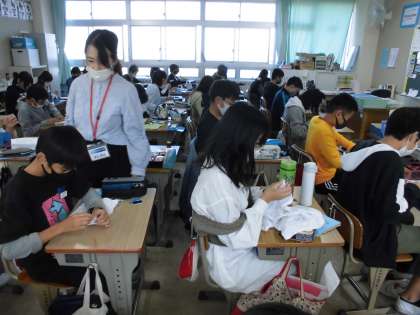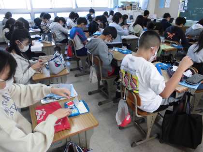 6年・家庭科「ぞうきん作り」 公開日 2021/10/20 更新日 2021/10/20 6年生 裁縫実習で,ぞうきんを作ります。いらなくなったタオルを折り,手縫いで心を込めて作ります。将来,きっと役に立つと思います。 写真はこちら↓ 閉じる