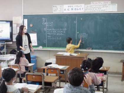2年・算数「かけ算」 公開日 2021/10/21 更新日 2021/10/21 2年生 3組では,3の段の学習をしていました。3を5回たすのでかけ算を使うことができることを,自分の言葉で何人もの子が説明していました。 写真はこちら↓ 閉じる